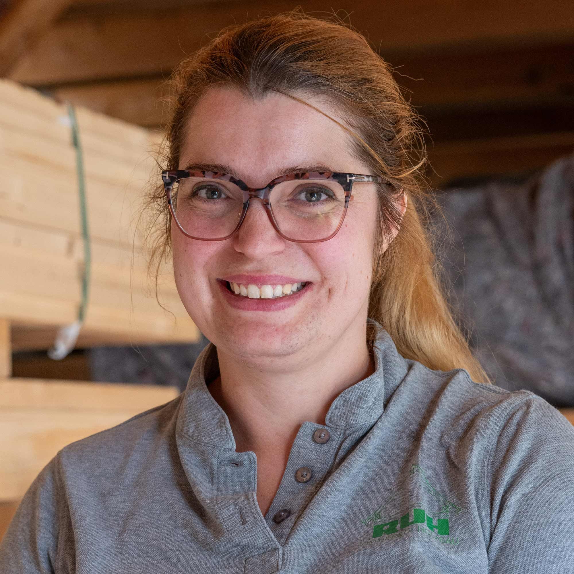 Janina hat zuerst eine Ausbildung im Bäckereihandwerk abgeschlossen, bevor es sie dann in die Zimmerei zog. Sie ist Meisterein im Zimmererhandwerk und hat die Organisation des Betriebs fest im Griff.